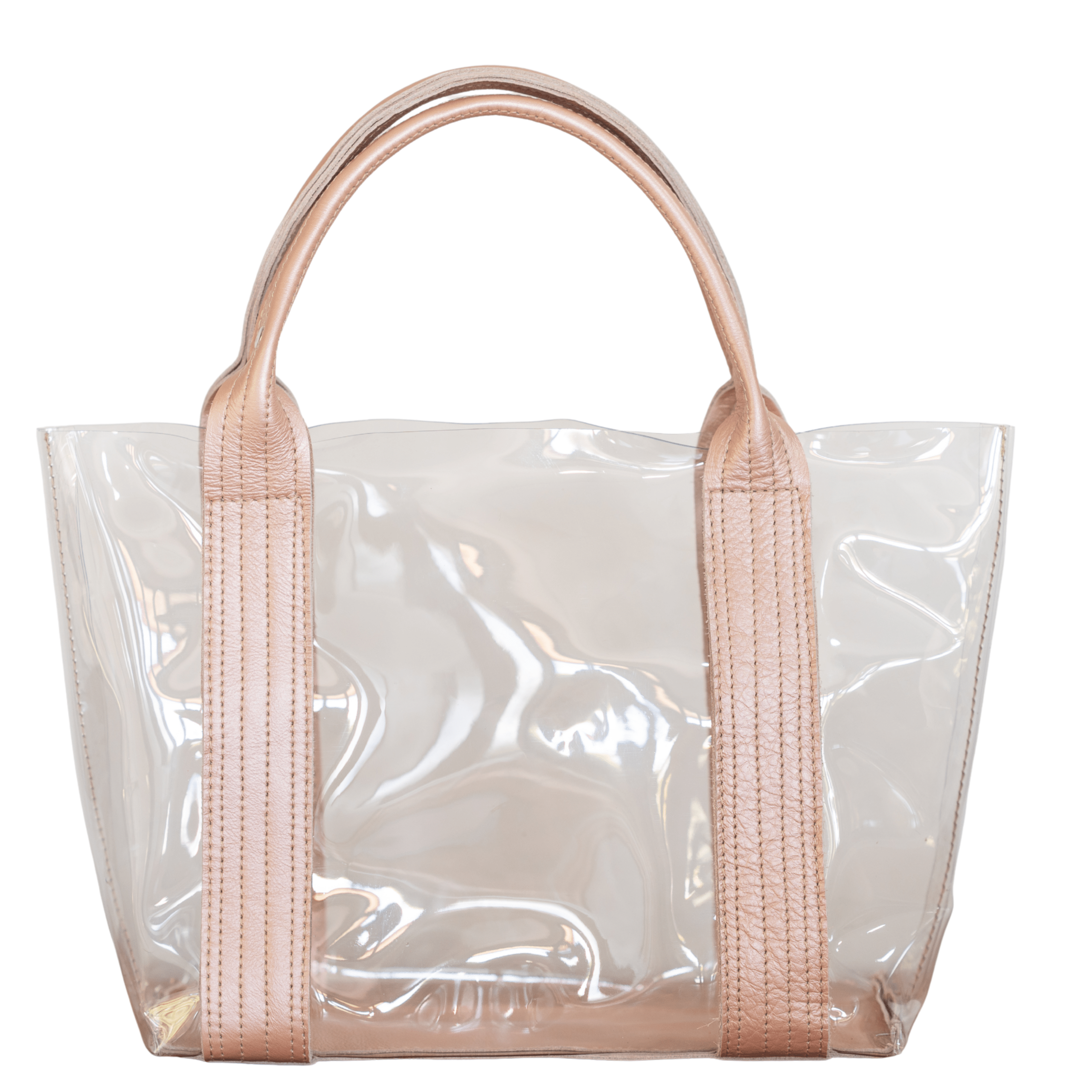 A modern essential designed for both style and versatility. This clear handbag features a structured transparent outer shell, allowing for a sleek, contemporary look while keeping contents visible and accessible.